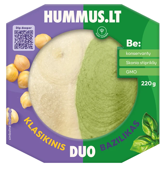 Virti avinžirniai 36,7 % (avinžirniai, vanduo), vanduo, rapsų aliejus, sezamų pasta Tahini 8,28 %, džiovinti pomidorai, skrudintos saulėgrąžų sėklos, cukrus, druska, spirito actas, džiovinti česnakai, rūgštingumą reguliuojanti medžiaga: citrinos rūgštis.